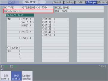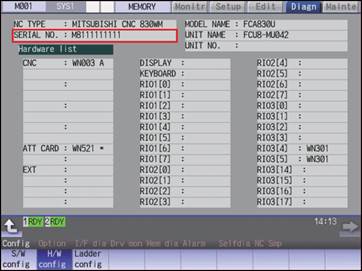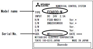 A. All Mitsubishi NC Control Units have a label on their cover (see image below) which lists the Model, Type and Serial Number.